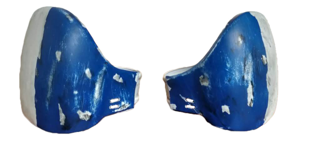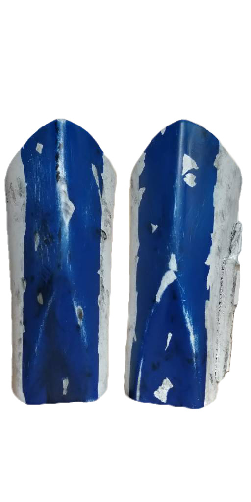 - The outside facing half of each elbow is painted “Cobalt Blue”.