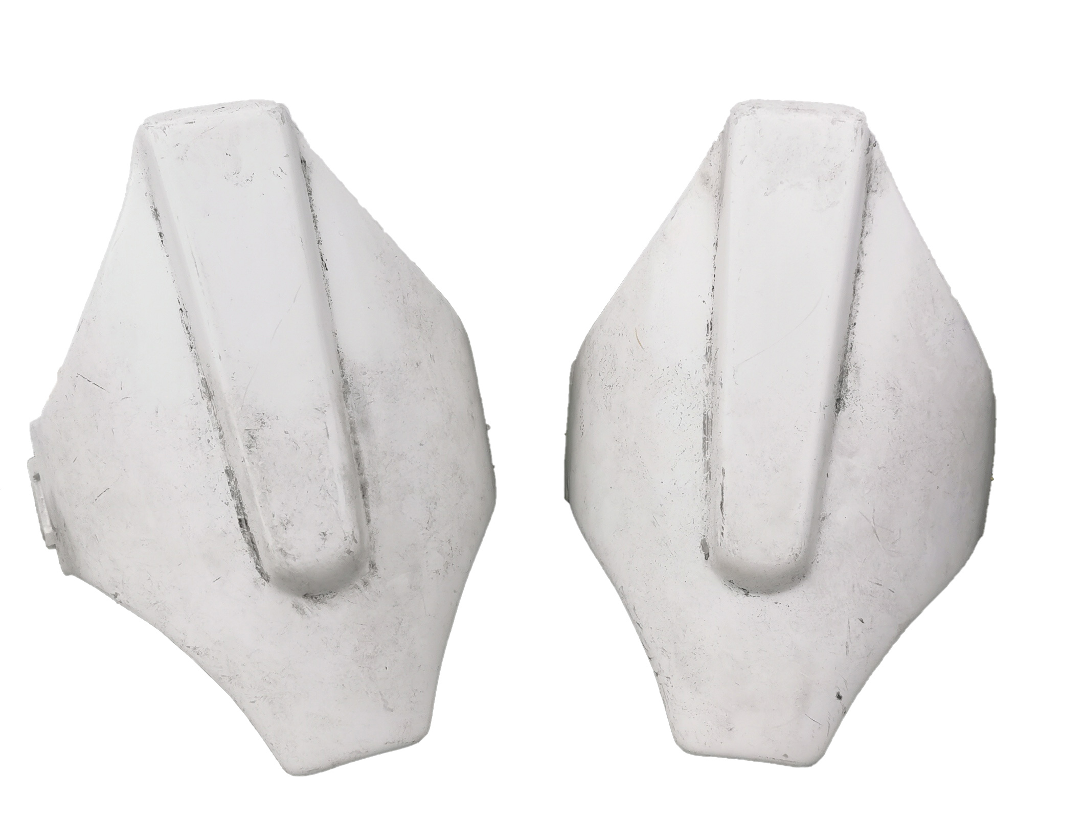 - Thigh Armor has a flat triangle area above the knee which transitions to a ridge line that travels up the front of the thigh to the top edge.
