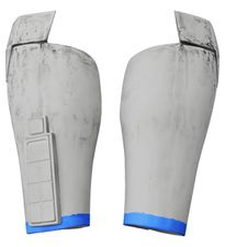 - Front of thigh armor has a flat triangular area near the knee with a notch cut out for the knee armor.