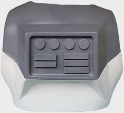 - Top part of the chest is painted with a curved matte med/dark gray section.