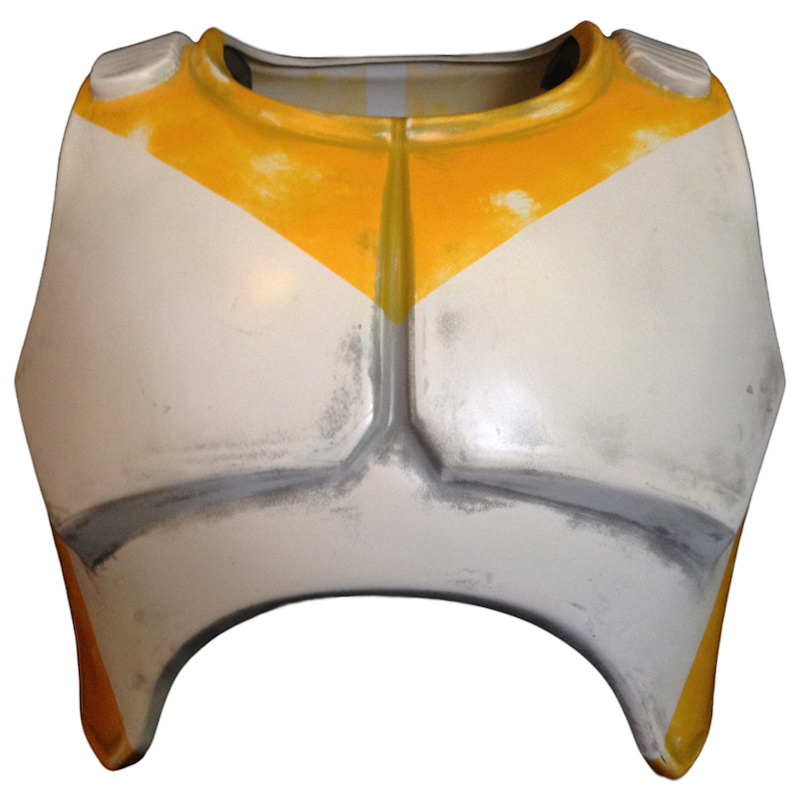 - Chest armor is painted Light Orange on the top in an upside down gradual sloping triangle that stops on the top of each shoulder.