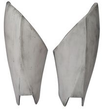- Front of thigh armor has a flat triangular area near the knee with a notch cut out for the knee armor.