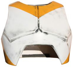 - Chest armor is painted Light Orange on the top in an upside down gradual sloping triangle that stops on the top of each shoulder.