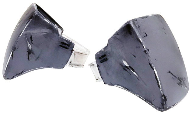 - Indented cheek areas are painted matte med/dark gray.