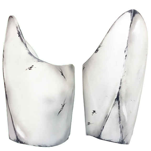- Armor is painted matte or satin white.