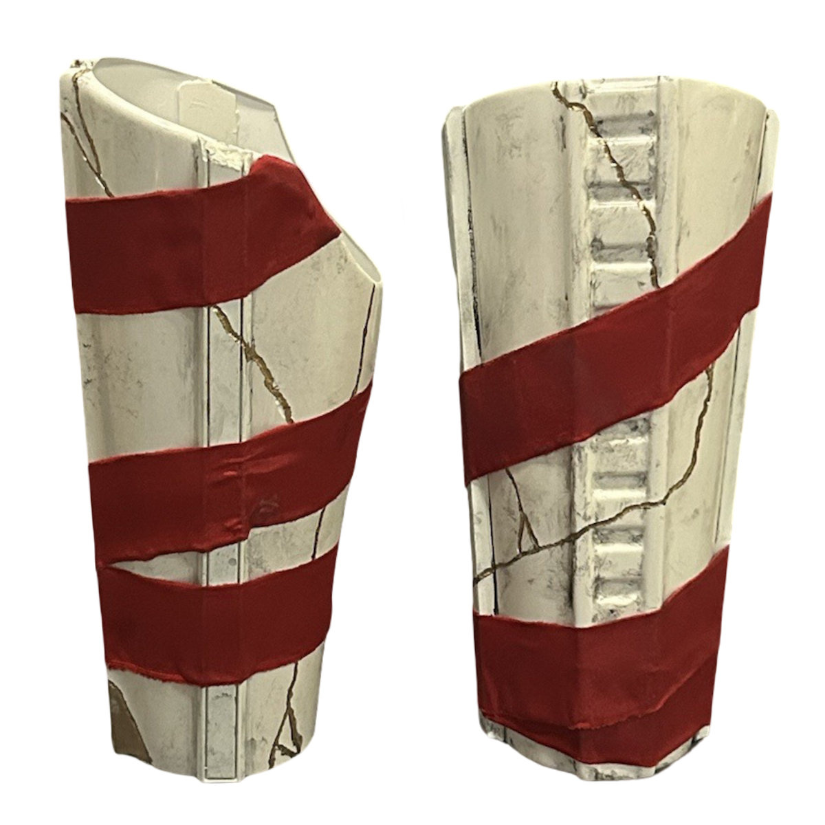 - Red fabric wrapping must be dark red in color, rough torn and applied consistent with screen reference.