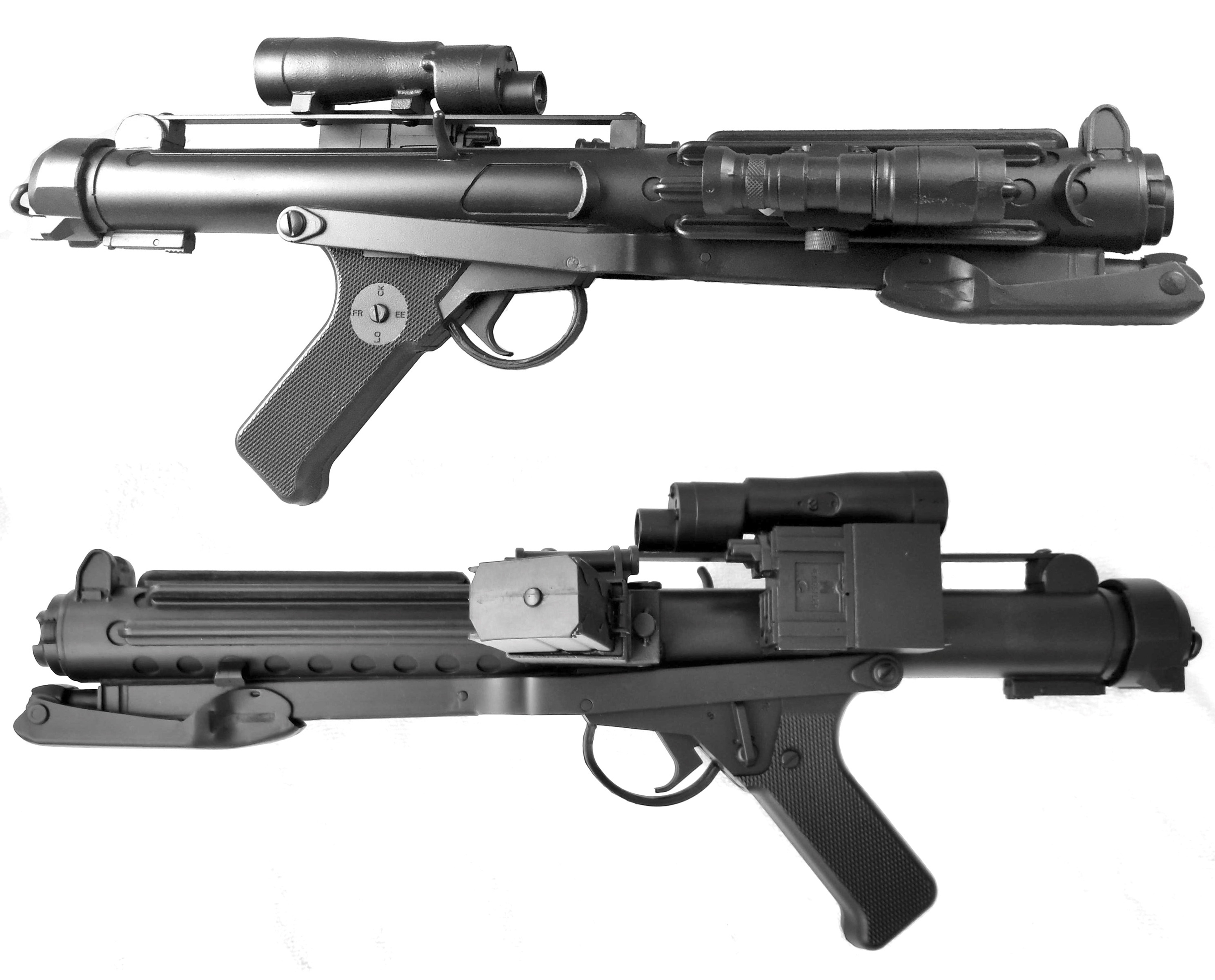 - Based on a real or replica Sterling Airsoft Gun, Sterling Sub-Machine Gun, scratch-built, or a modified commercial toy Stormtrooper blaster.