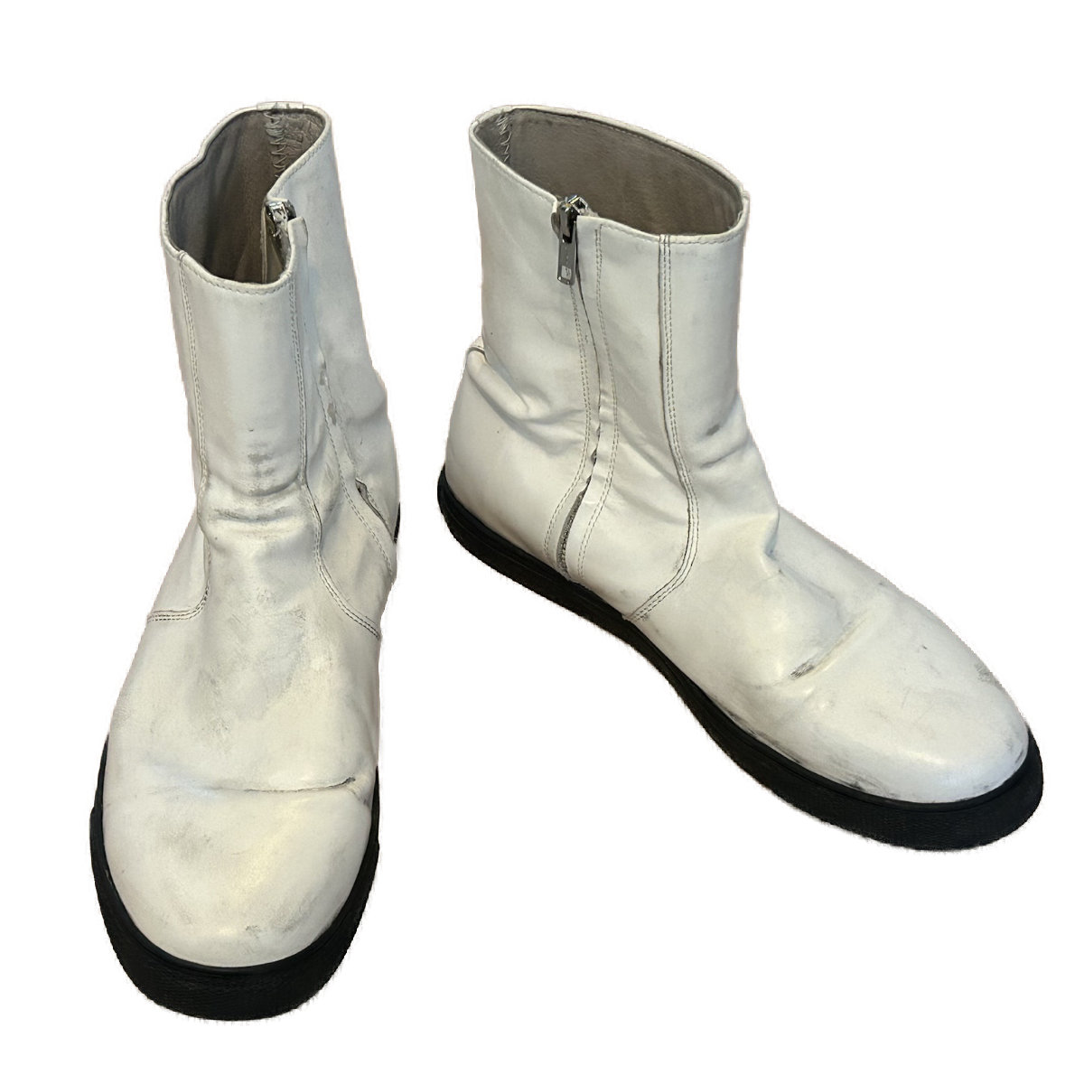 - Boots are all white and made of leather or leather-like material