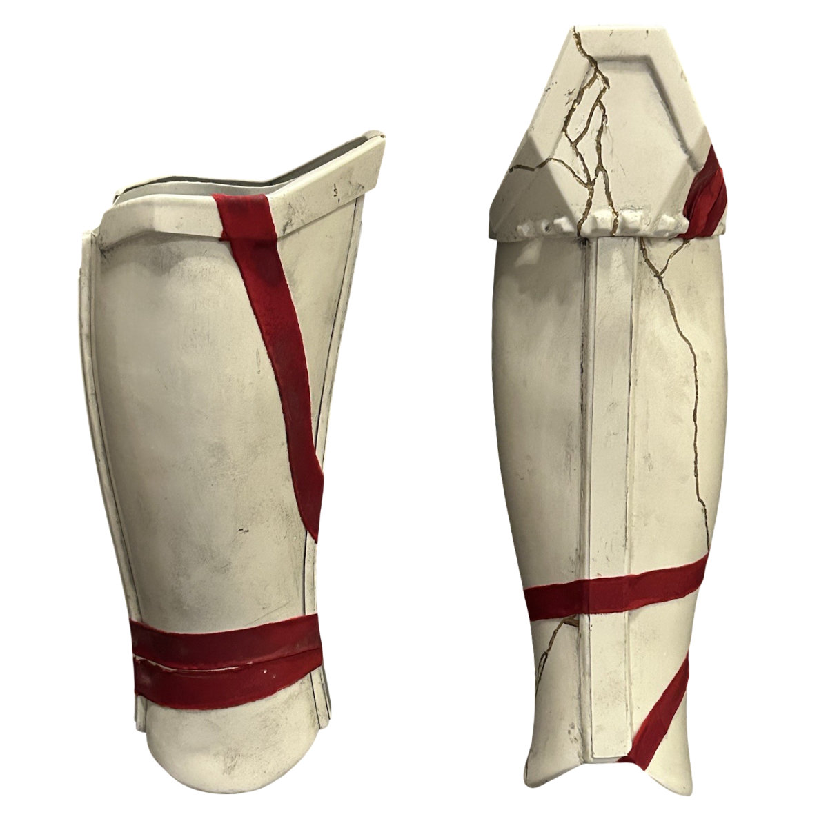 - The top edge of the greaves has a raised detail that fallows the top edge contour.