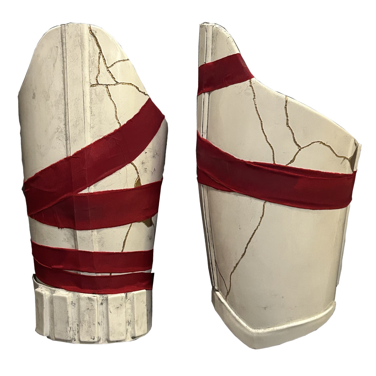 - Red fabric wrapping must be applied to armor parts that have photos showing it.