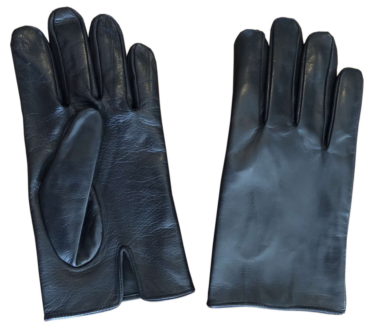 - Black, wrist length gloves constructed of a smooth, non-textured leather or leather-like material.