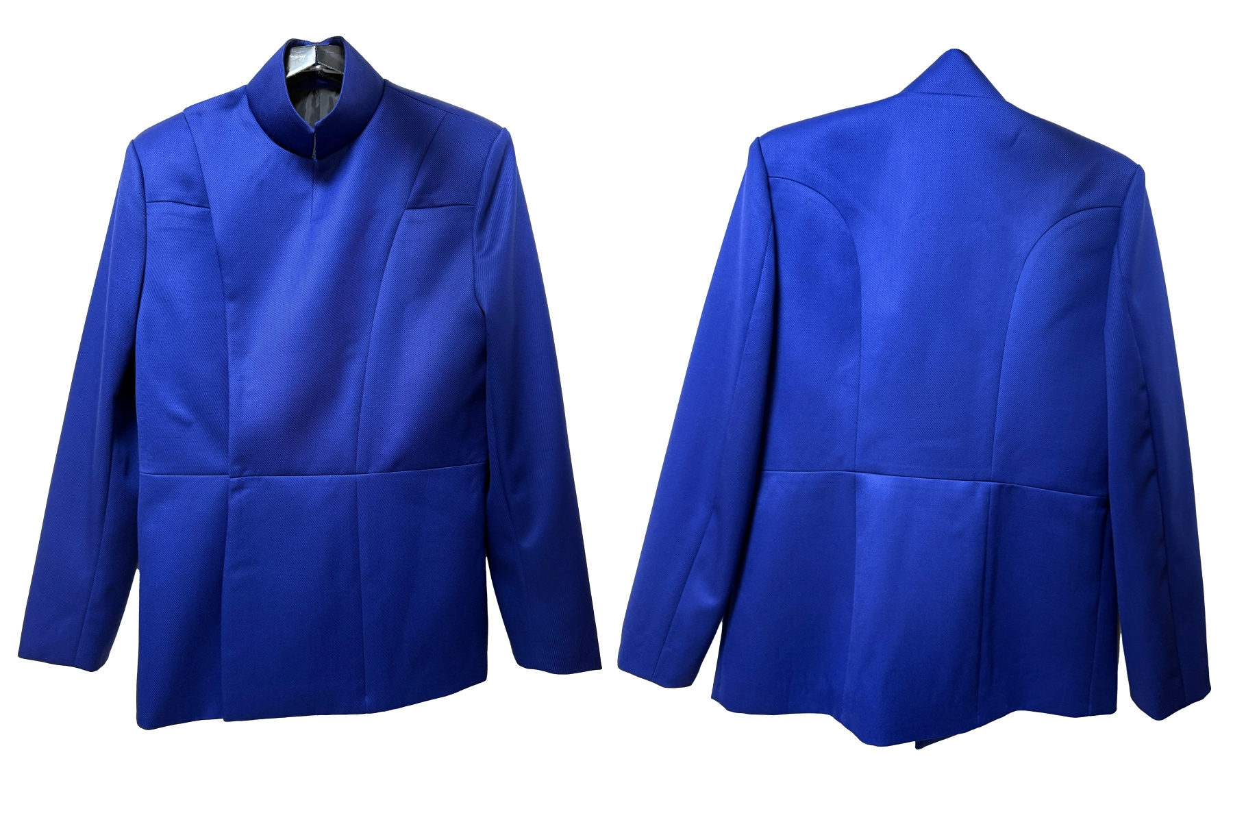 - Fabric should be a medium weight, Royal Blue suiting material.