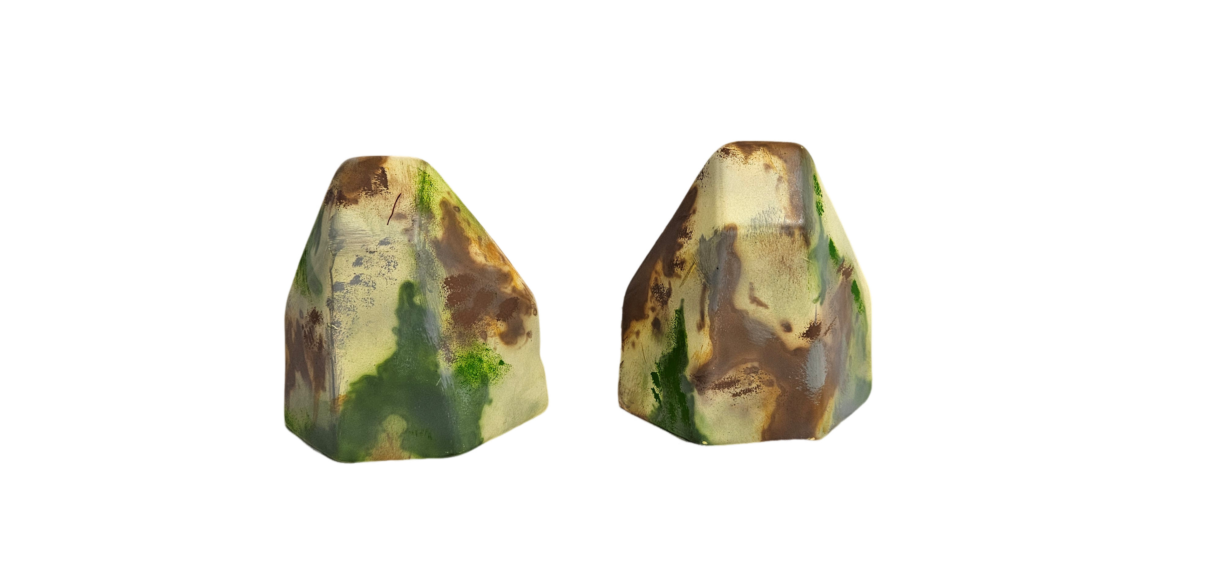 - Camo patterns colored dark green and flat brown.