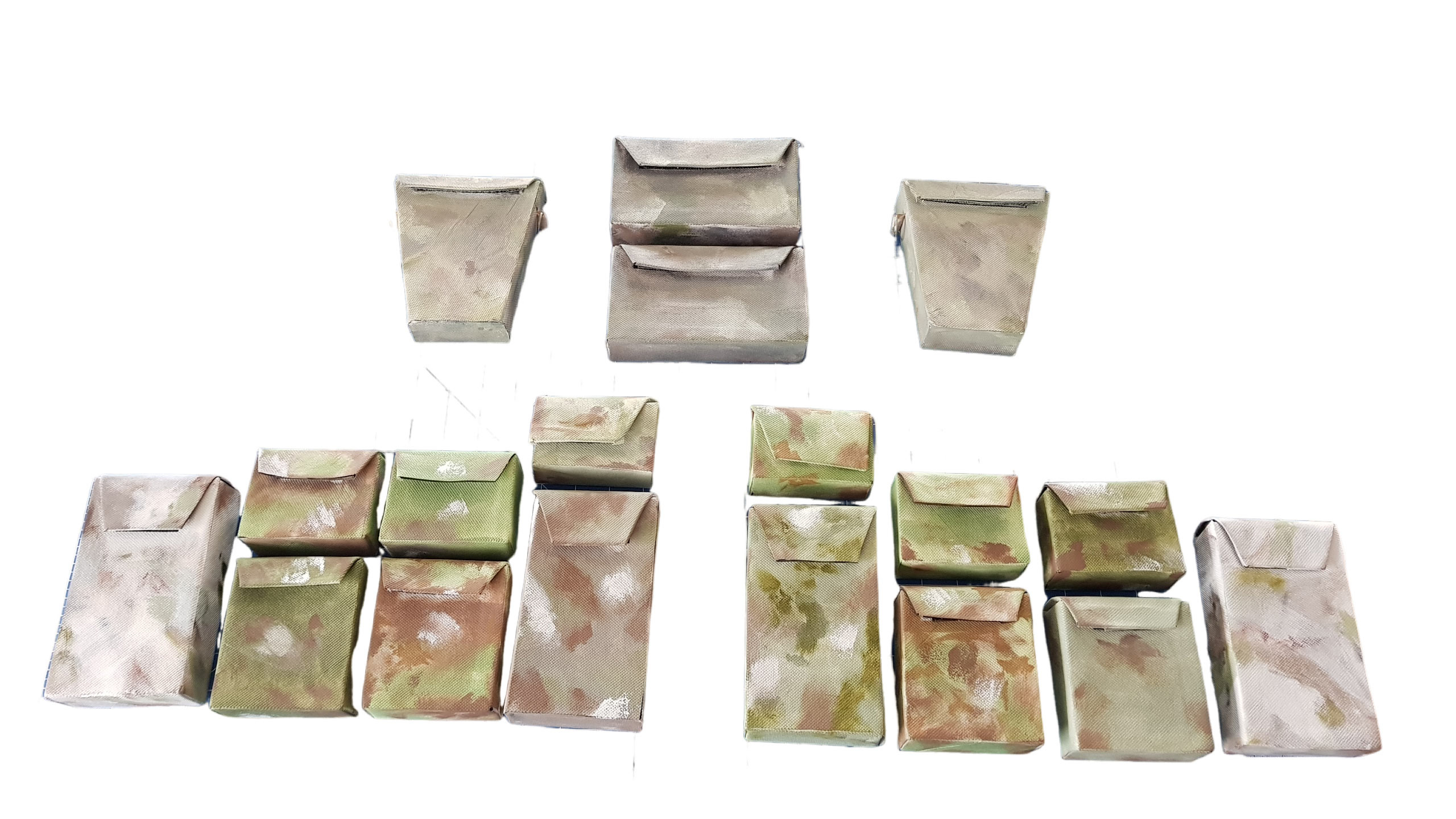 - Camo patterns colored dark green and flat brown