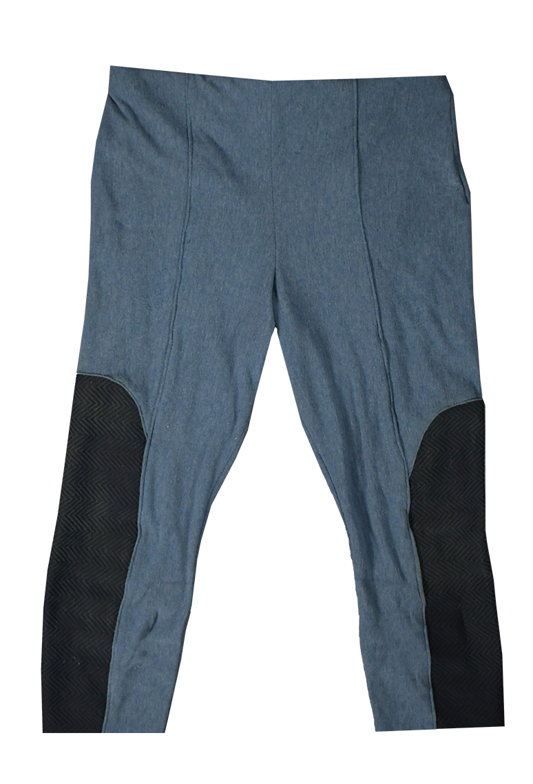 - Leggings are made of two materials: a dark blue and black chevron pattern, and a heathered soft stretch light denim blue material.