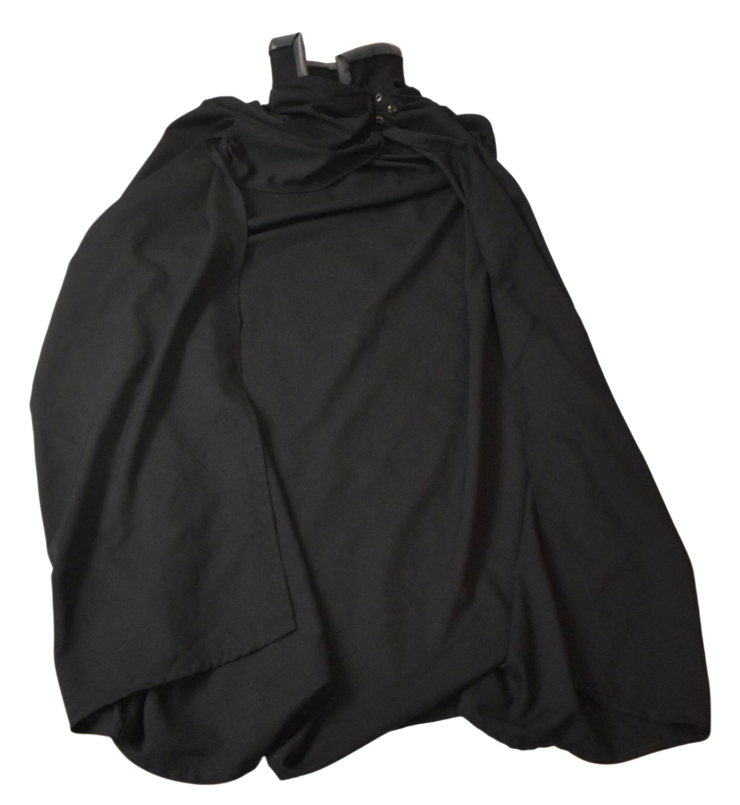 - Cloak drapes across the front to attach on the left side, similar to a Roman cloak.