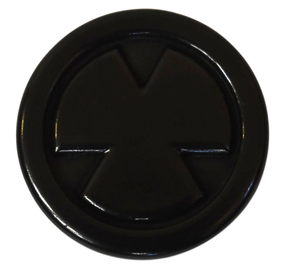 - The color is a glossy black that matches the pauldron and belt buckle.