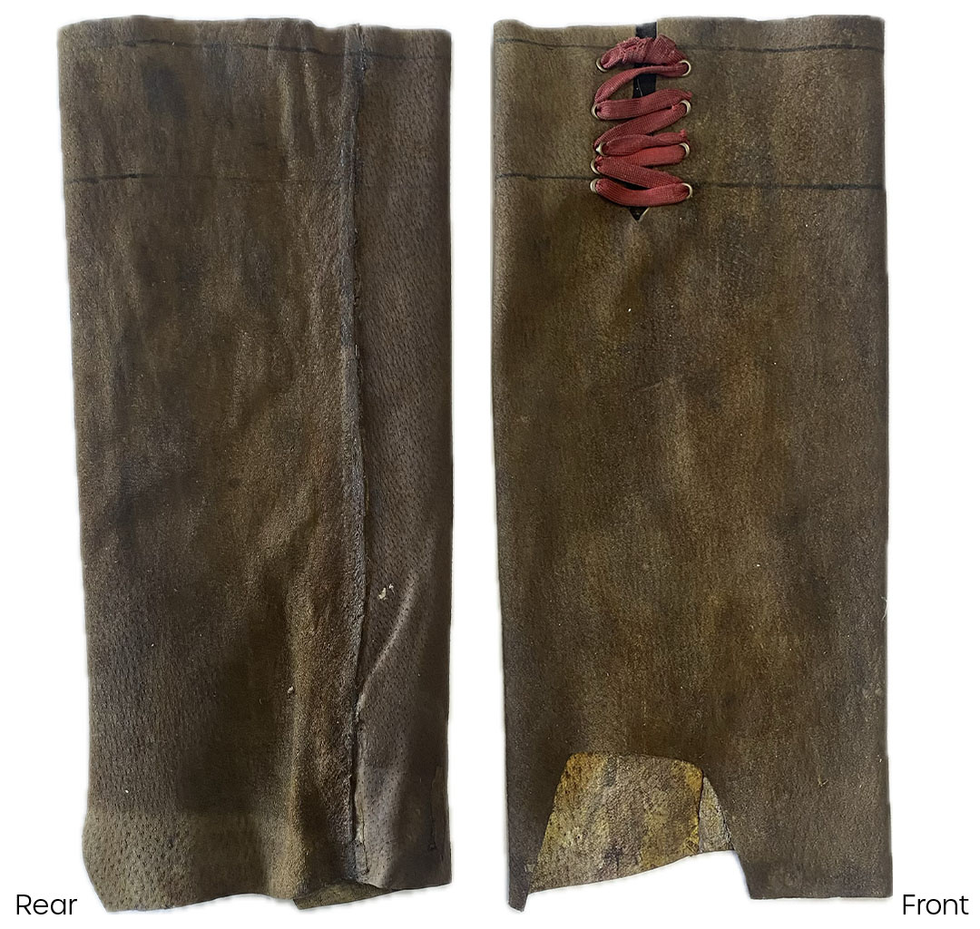 - The spats are made from a leather or leather-like material, and brown in colour.