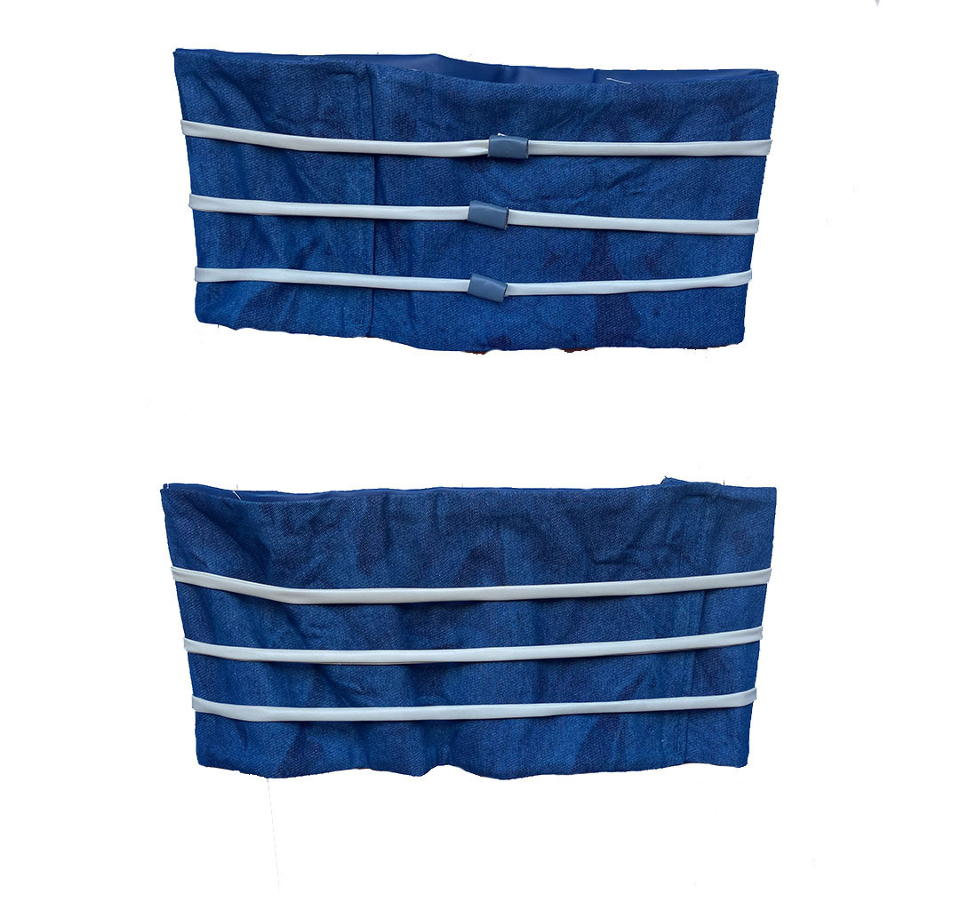 - The girdle has three (3) white coloured ridges that run around the outside, and feature three (3) connection points that are positioned at the costumers hip.