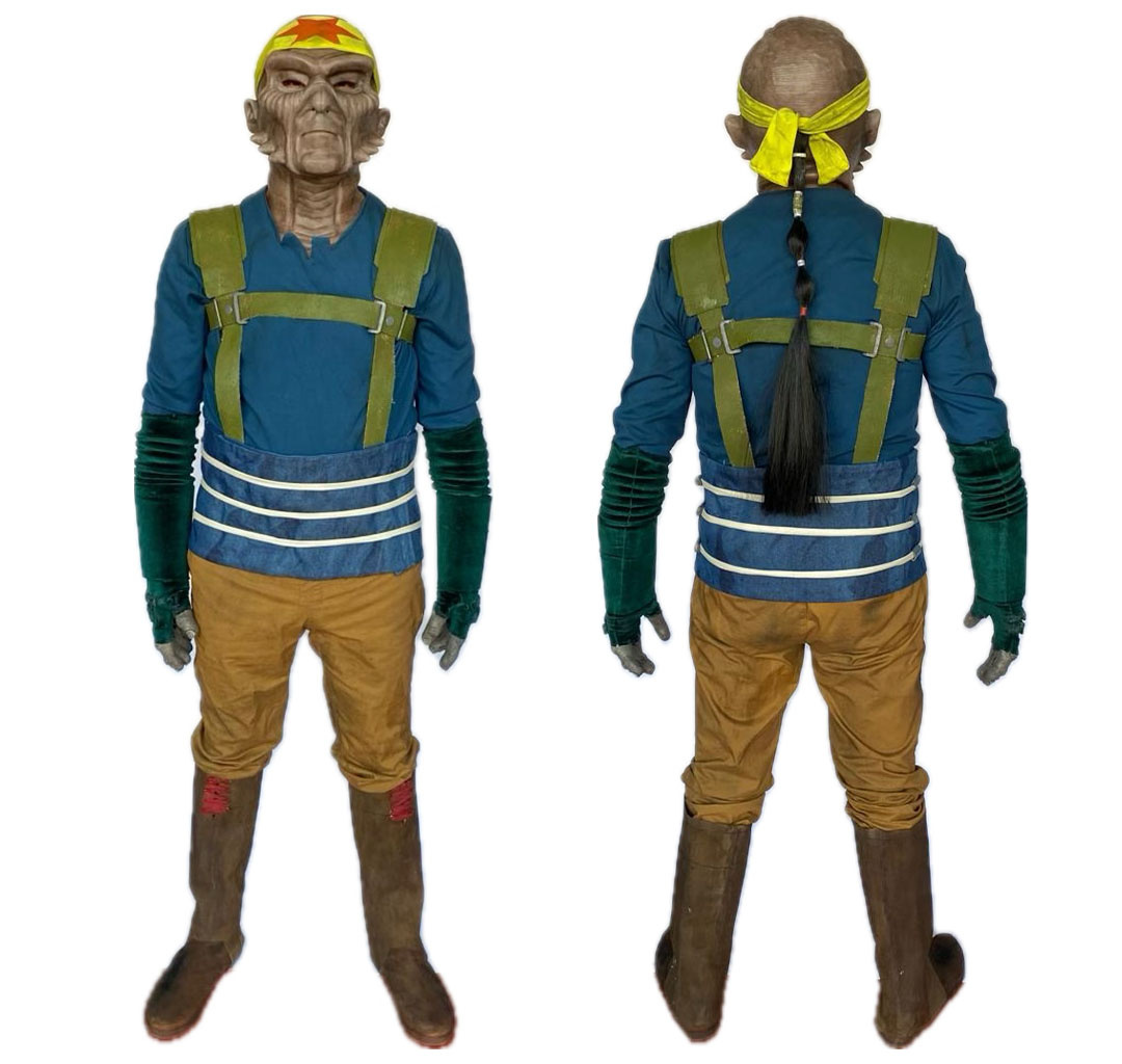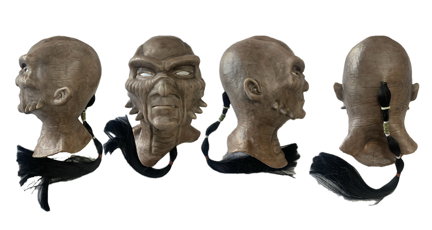 - The mask is brown in colour and must be of a high quality representation of silicon or latex. The costumers face, neck and all skin exposed by the neckline are covered by the mask.