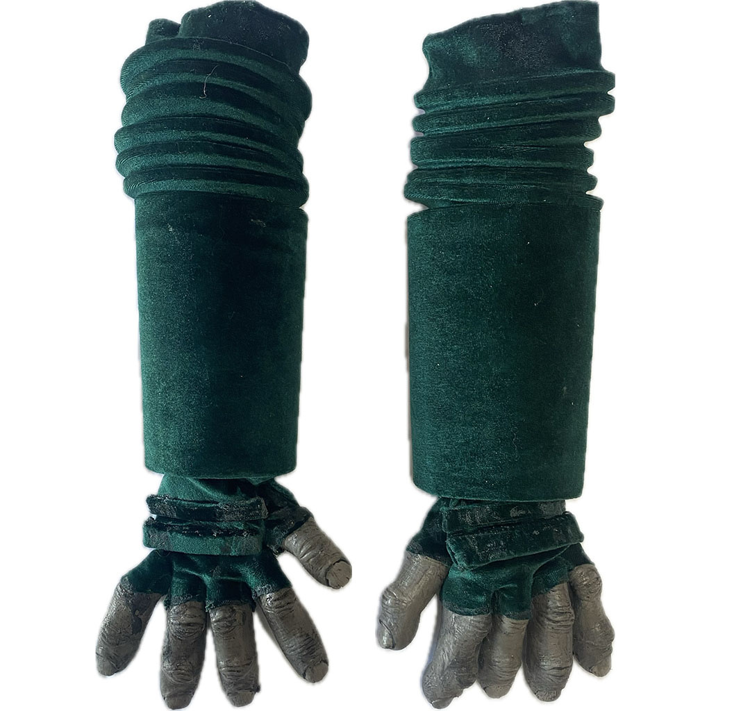 - The gauntlets are made from a velvet like material, that is green in colour.